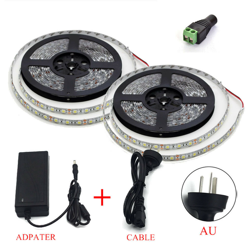 AU White 600 SMD 3528 Waterproof 10M LED Strip Light + AC 240V to DC 12V Adapter